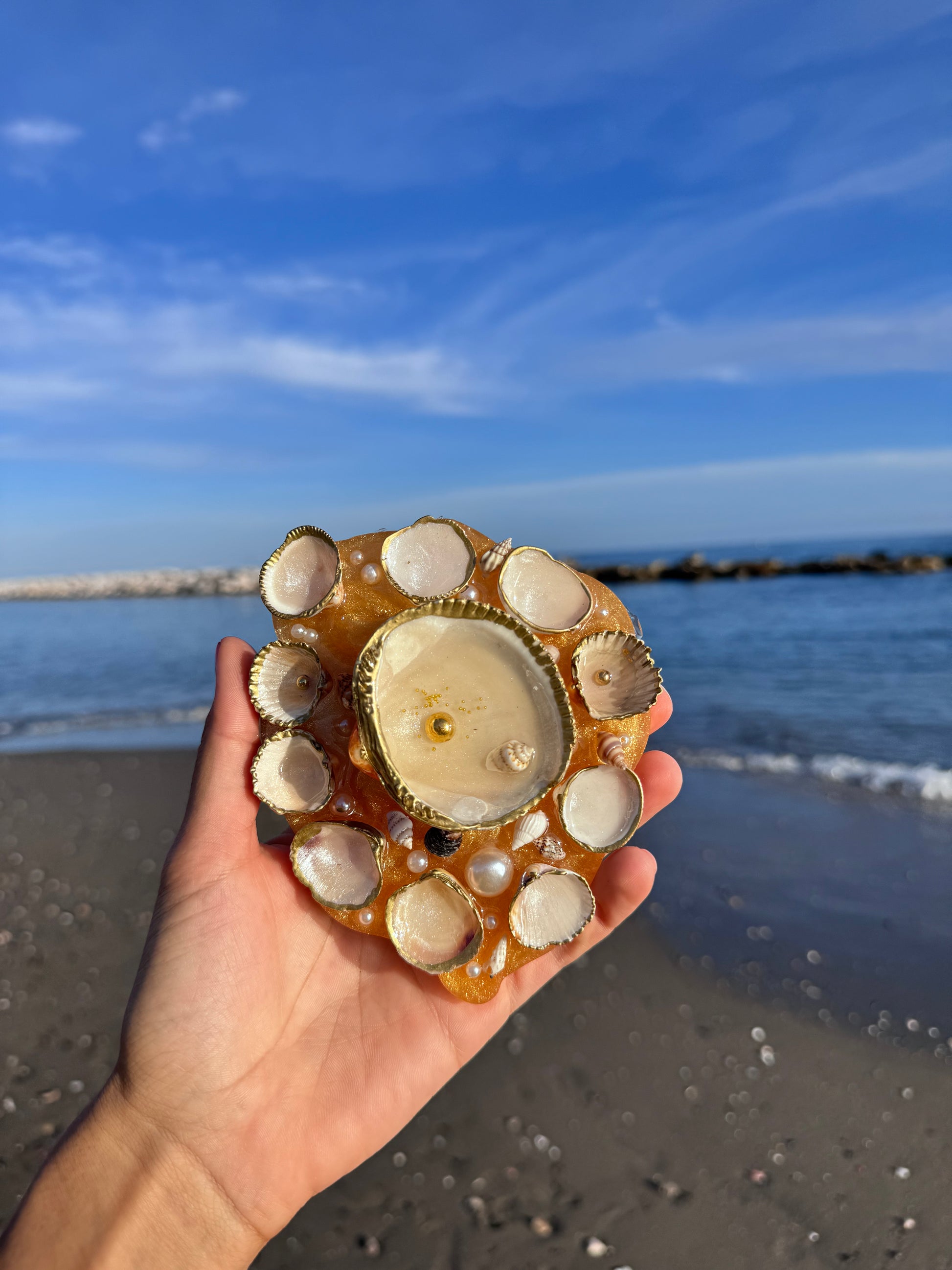Esta paleta está elaborada con dedicación y cuidado, pensada para acompañarte en tu proceso creativo. Cada pieza es un modelo único e irrepetible: no existen dos iguales. Para crearla, he transformado conchas recicladas 🐚 en una herramienta artística hermosa y funcional.